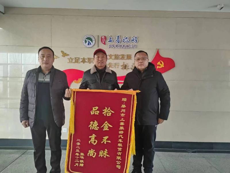 12月20日上午,市民張先生將一面印有“拾金不昧 品德高尚”的錦旗送到交發(fā)集團上善旅游汽車租賃有限公司,對公司駕駛員和工作人員表示感謝。